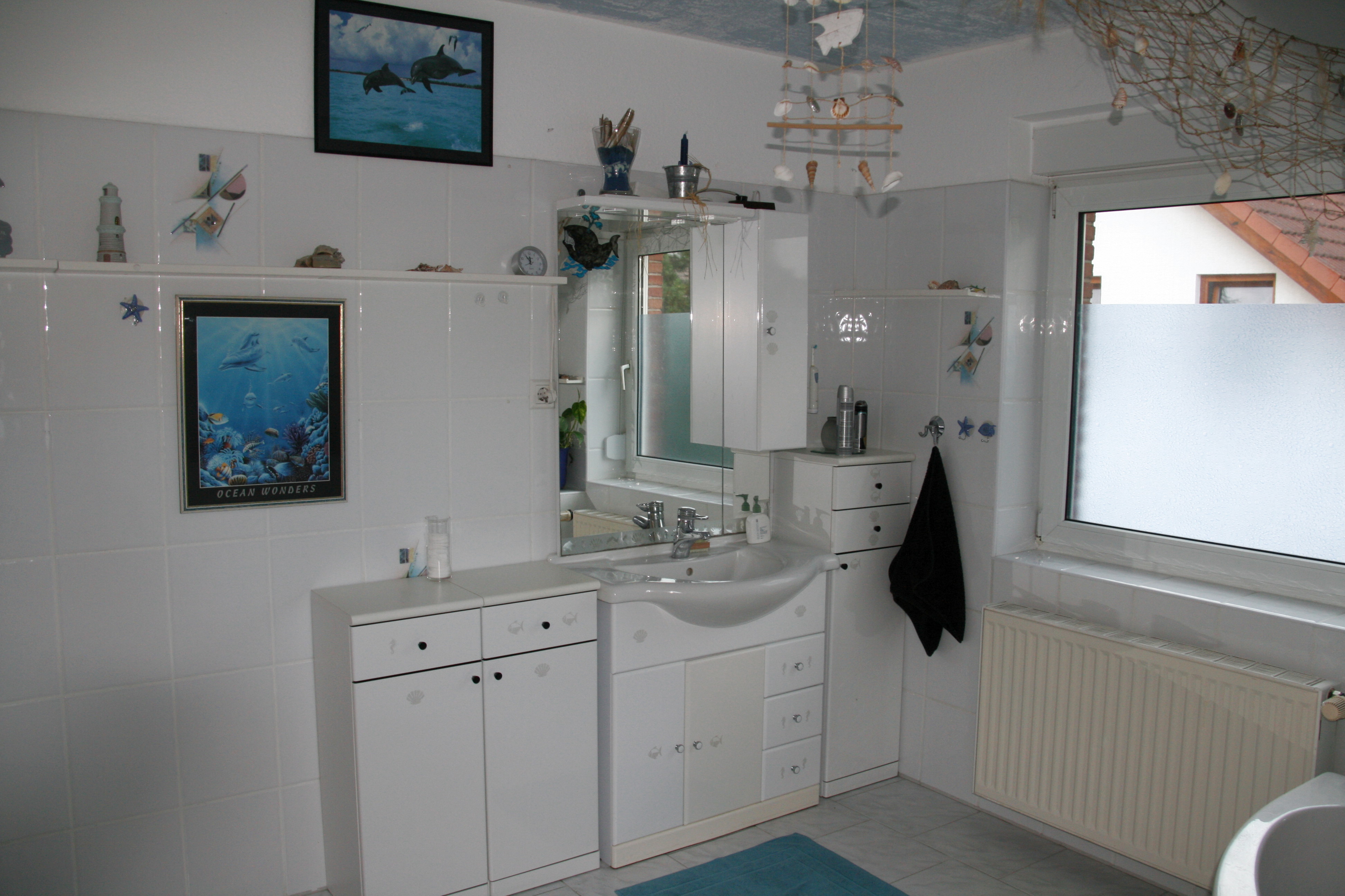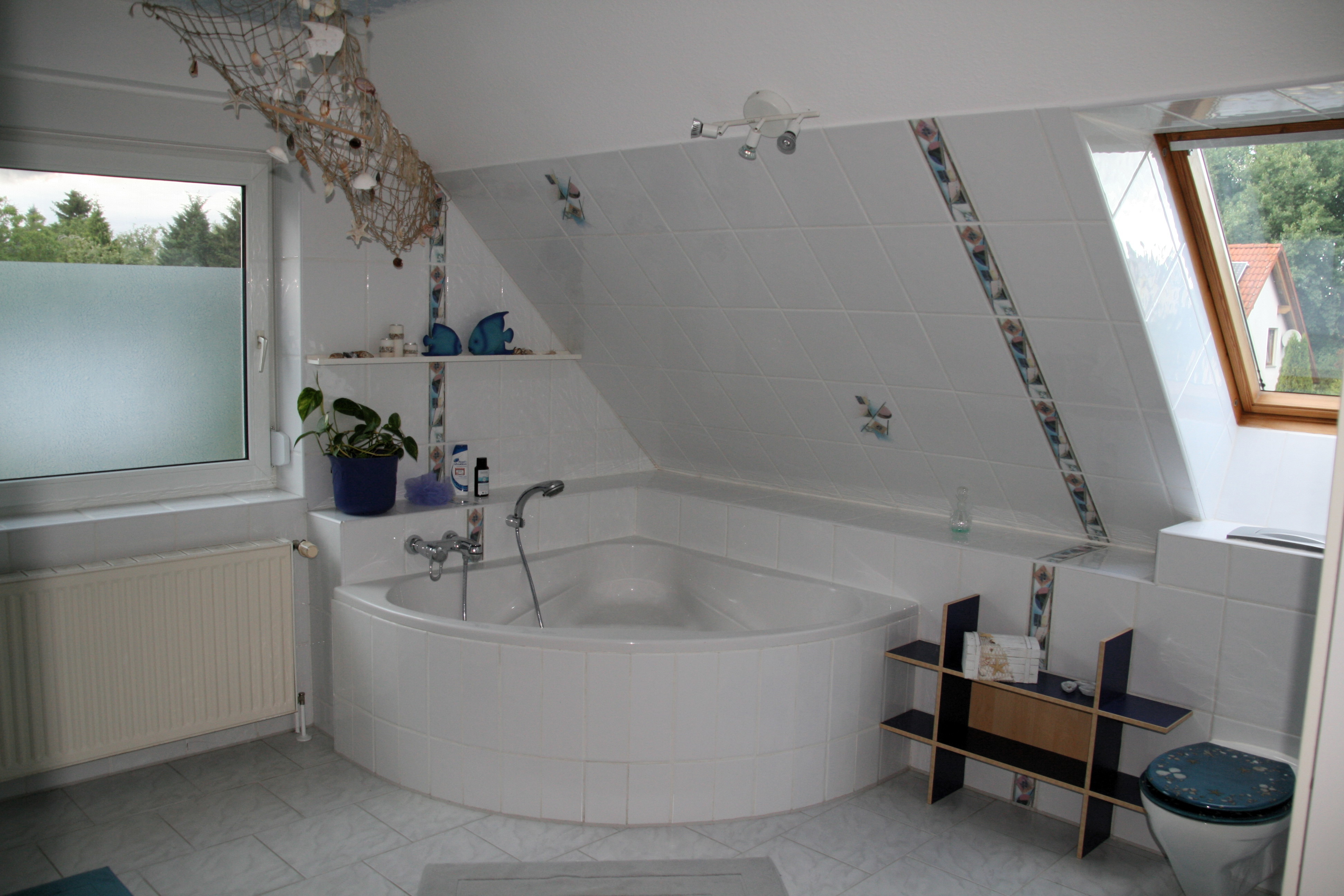 Das geräumige Badezimmer steht auf der gleichen Etage für beide Gästezimmer bereit. Der